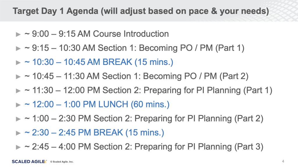 - Connect SAFe Lean-Agile principles and values to the PO/PM roles